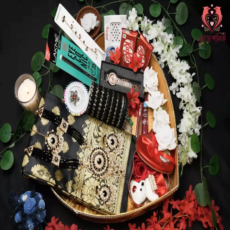 রাজকীয় ব্ল্যাক কাতান ও লাক্সারি এক্সেসরিজ গিফট বক্স - কম্বো (১৫ পিস সেট)